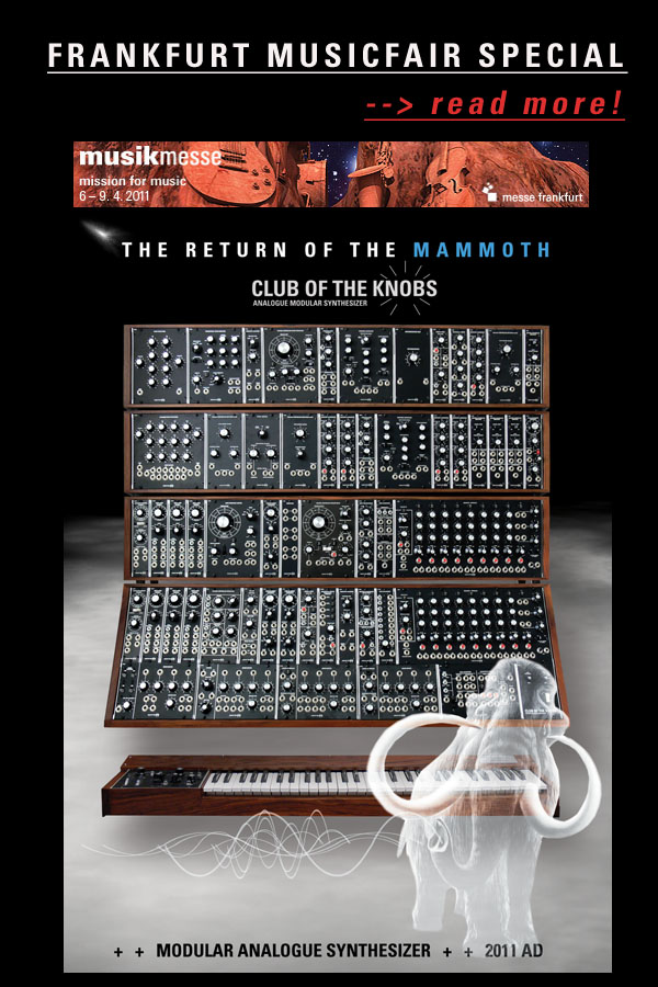 FEBRUARY 2012 -->NEW! C 980 DUAL WAVEFORM MONITOR - understand what you hear by seeing what you hear! Also very useful for learning or teaching analog sound synthesis (for beginners we recommend our portable Model 15!) --> Jens Hellwig was so kind to draw a Patch Sheet for our Model 15! Thank you! It is to download here! --> Additional INBOX explanation for our C 951A ARPEGGIATOR ROUTER. --> download here! |
